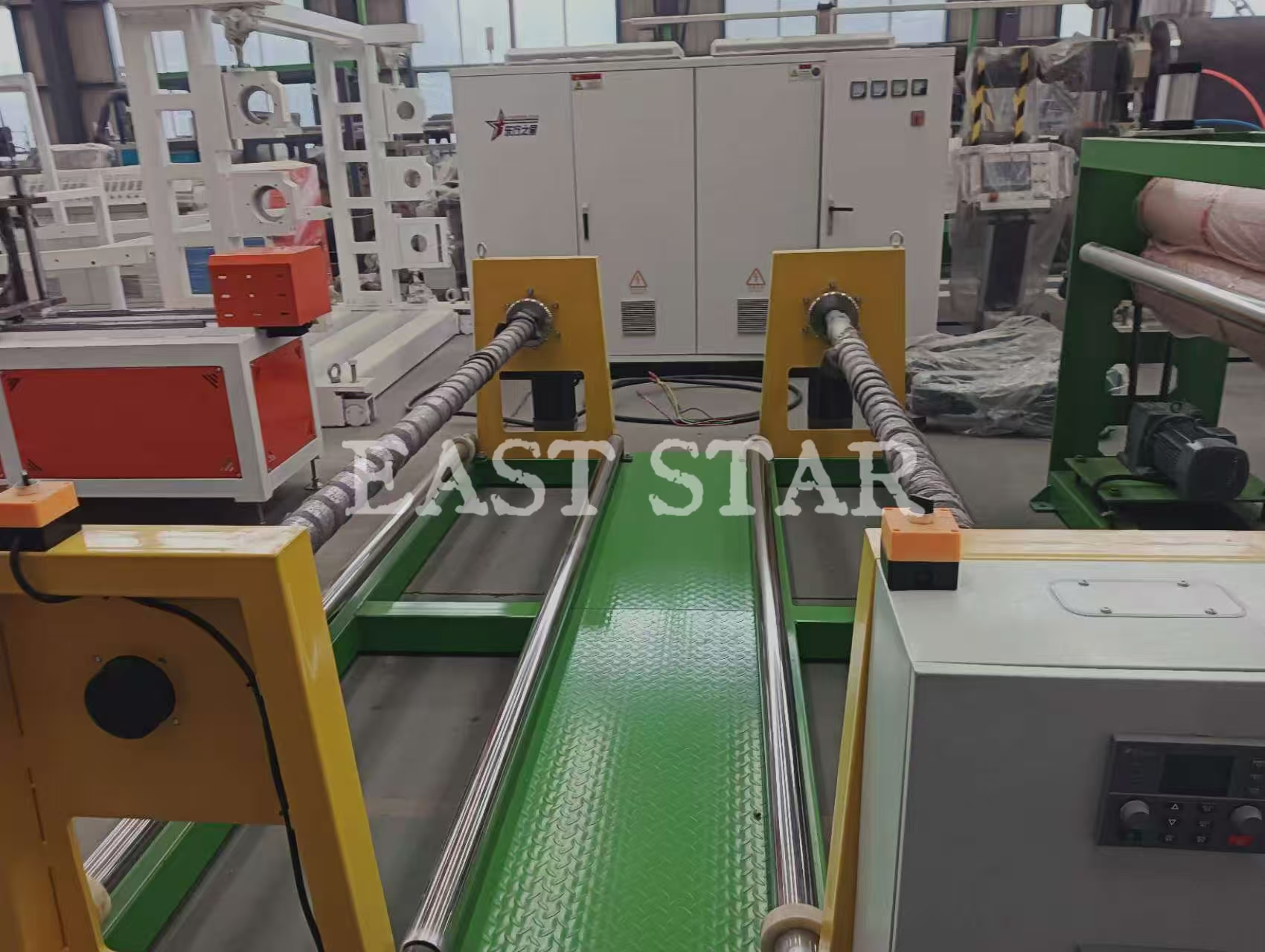 · Vastuvõtu- ja tagasikerimisseade: tagab stabiilse veojõu ning kerib jahutatud ja vormitud lehe automaatselt korralikuks mähisesse, et seda oleks lihtne transportida ja hiljem töödelda.