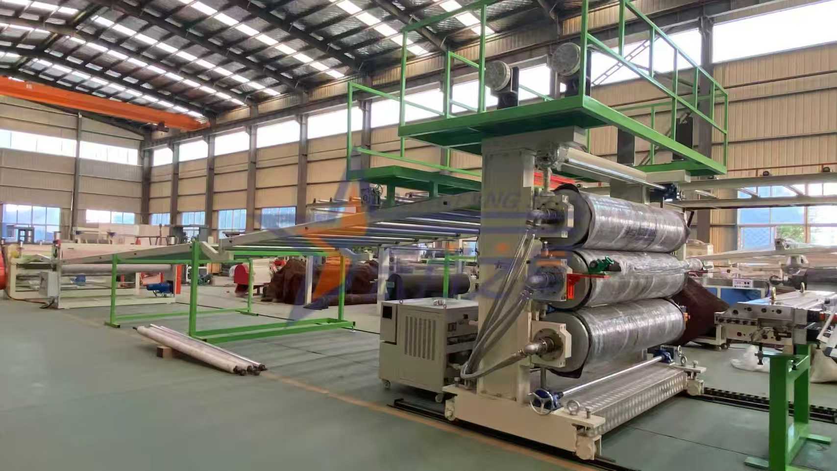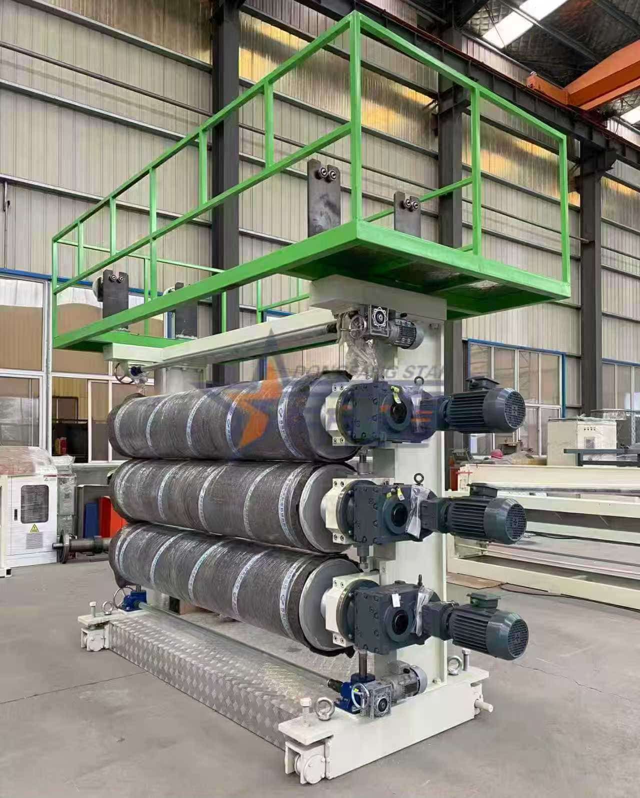 Kirjeldus: ∮450mm×2200mm suure läbimõõduga peegelviimistlusega rullid (kõvadus RC60-65) sõltumatu temperatuuri reguleerimise ja ajamiga. Rulli pinna ühtlane ja konstantne temperatuur võimaldab kiiresti vormida ja kõrvaldada voolujälgi, mis on kvaliteetsete seadmekorpuste ja reklaamtahvlite valmistamise võtmeks.