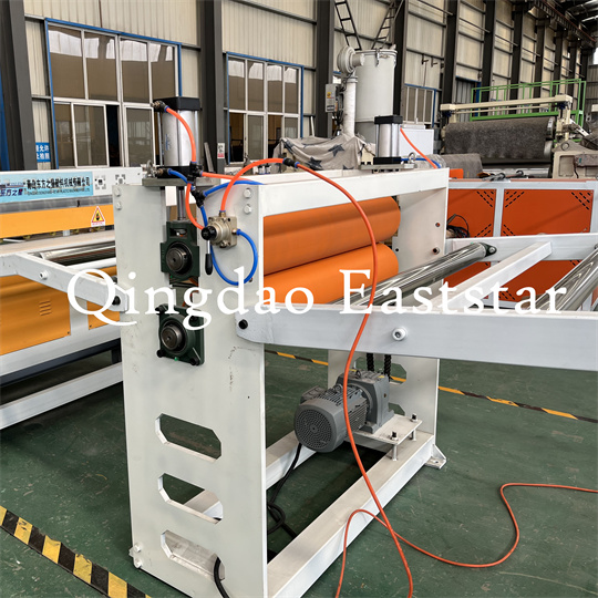PVC libisemisvastase mattide seadmete pehme lehe masin: seadmed koosnevad peamiselt ühe kruviga ekstruuderist, kolme rulliga kalandrist, 6-meetrisest jahutusest