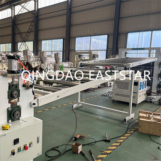 pvc valgustuspaneeli ekstruuderi seadmed PVC valgustusplaatide ekstruuderi seadmed: seadmed koosnevad peamiselt kahe kruviga ekstruuderist, plaatvormist, kolme rulliga kalandrist, jahutusklambrist, kummist rulli veomasinast, lõikemasinast ja transpordiseadmest.