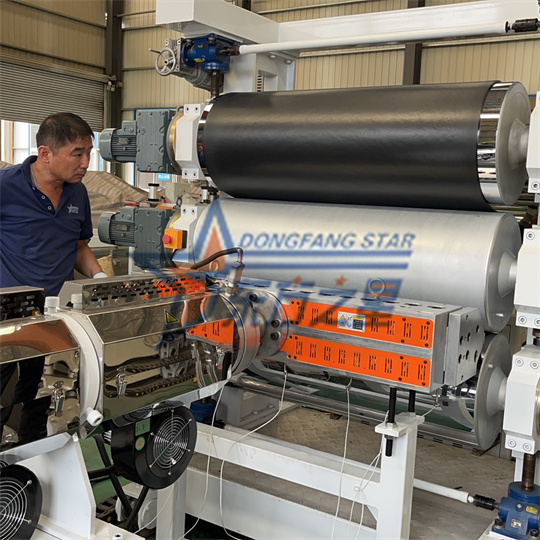 Pehme PVC antistaatilise ekstruuderi seadmed: seadmed koosnevad peamiselt 120 ühe kruviga ekstruuderist, kolme rulliga kalandrist, jahutusklambrist, kummist rulli veomasinast, lõikemasinast ja