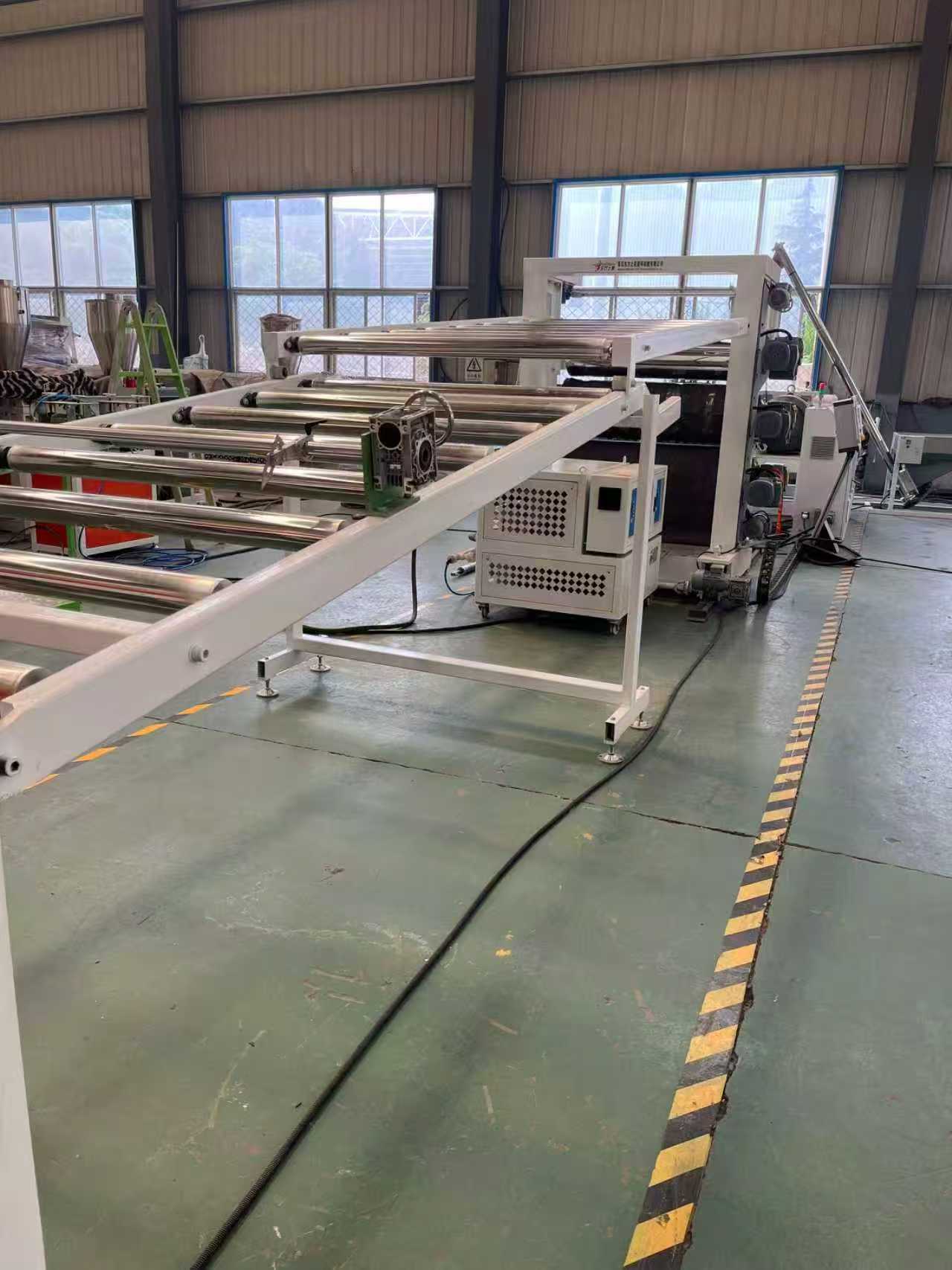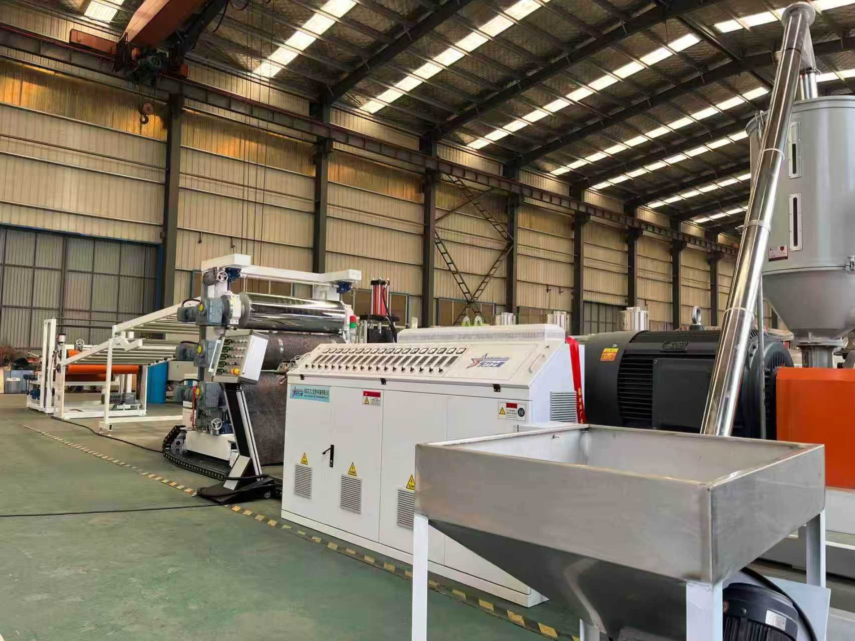 TPE-1000mm libisemisvastase mattvarustuse auto põrandamatid: Seadmed koosnevad peamiselt ühe kruviga ekstruuderist, kolme rulliga kalandrist, 6-meetrisest jahutusklambrist, kummirulli tõmbemasinast, lõikemasinast ja konveierilindi seadmest.